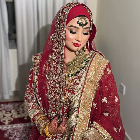 Complete bridal look with flawless makeup & styling.