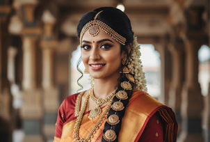 Complete bridal look with flawless makeup & styling.