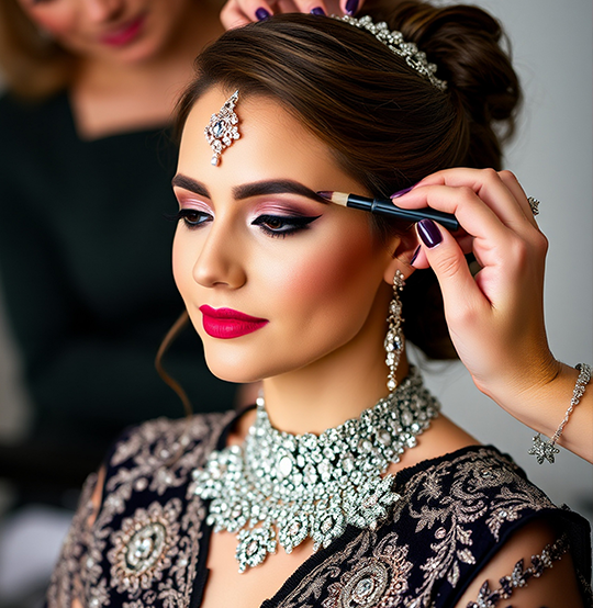 1. Bridal Makeup: Traditional, contemporary, and regional styles, focusing on long-lasting, photo-ready looks for both day and night events.